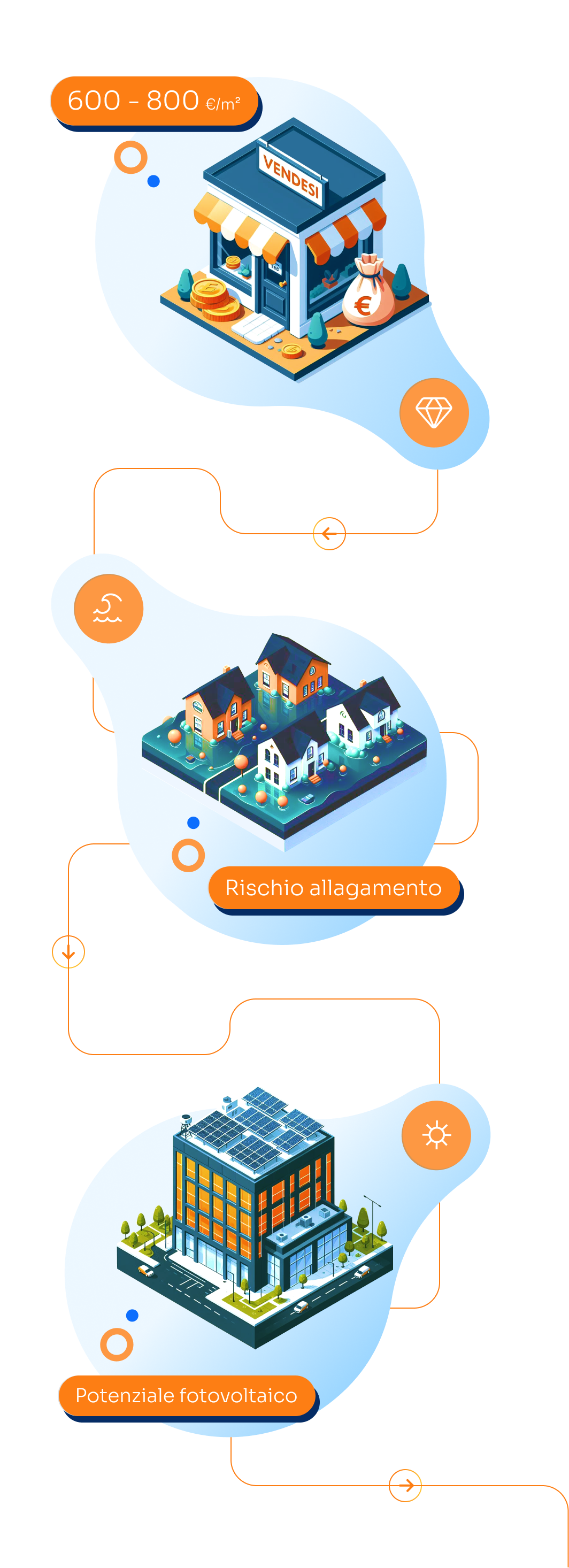 Siamo la prima azienda in ambito proptech che permette di prendere decisioni informate e data driven. Grazie all’Intelligenza Artificiale e ad analisi geografiche mirate ti proponiamo una scheda per ogni immobile per una gestione più precisa ed efficiente degli investimenti, una riduzione dei costi operativi e un processo decisionale semplificato.