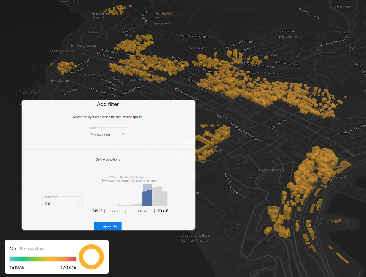 Monitora il potenziale energetico distribuito e identifica zone adatte per interventi diffusi. I report offrono insight operativi per ottimizzare reti e strategie di produzione locale. Utile per valutare interventi su ampia scala e microgrid.