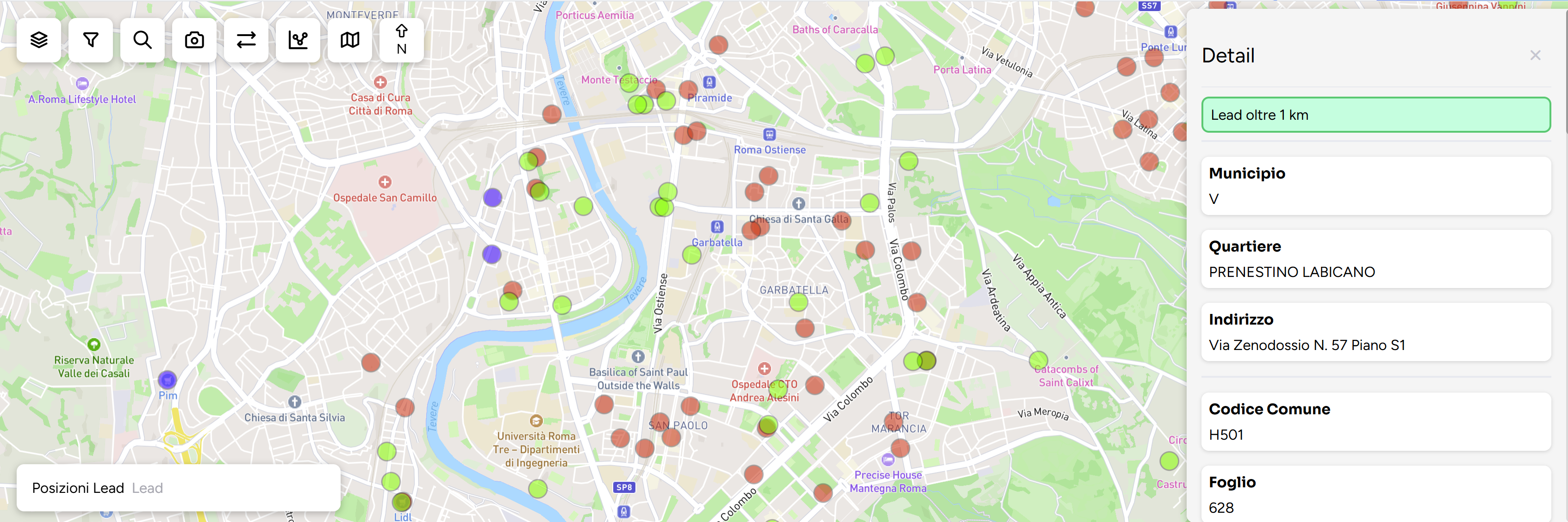 Ogni lead è arricchito con questi dati in modo chiaro, comparabile e georeferenziato, consentendo ai team di sviluppo di prioritizzare le visite, confrontare alternative e dialogare con partner e investitori con una base dati condivisa e oggettiva.