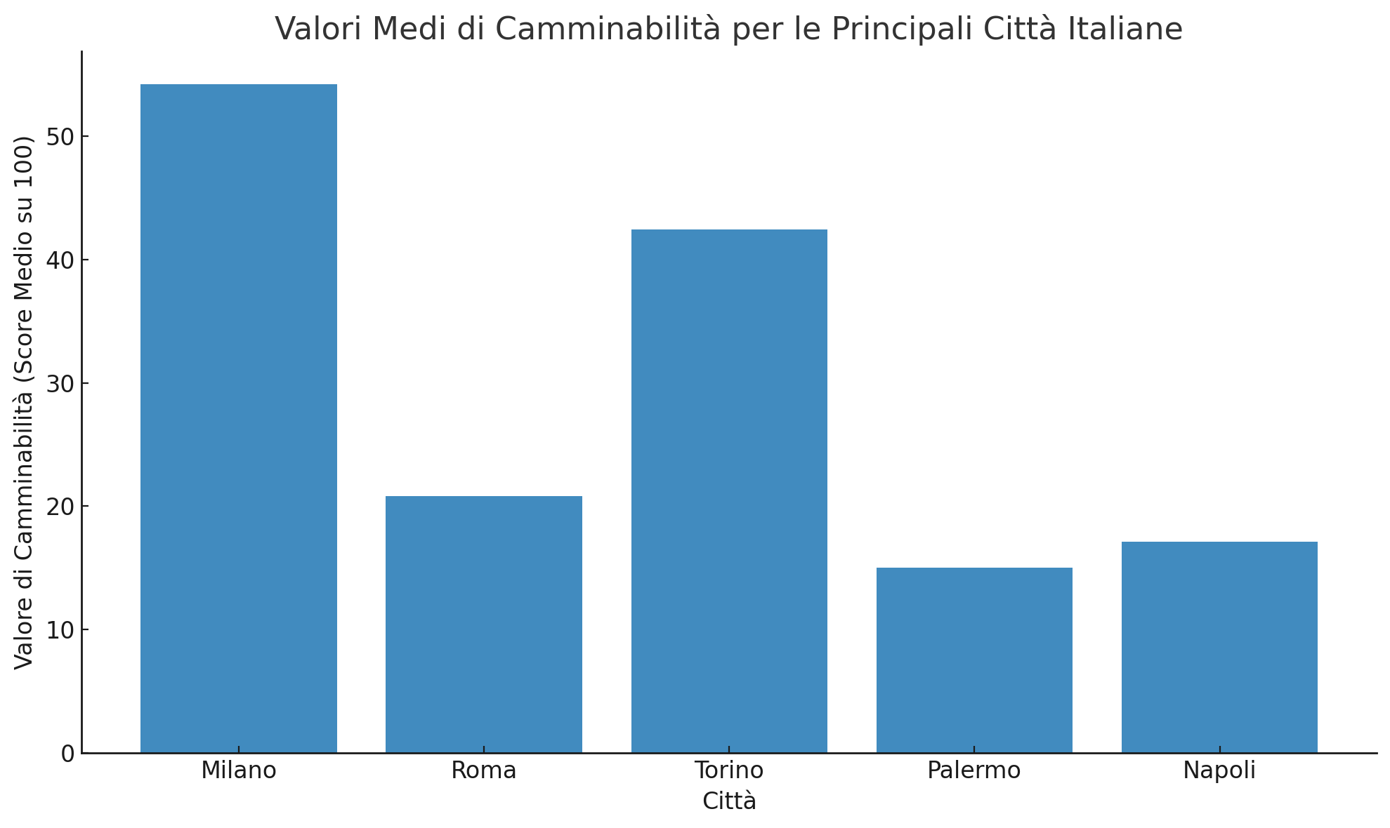 La camminabilità è un indicatore essenziale per valutare la qualità dei quartieri italiani. Un buon livello di camminabilità, determinato dalla presenza di piste ciclabili, marciapiedi sicuri e distanze brevi dai punti di interesse, non solo favorisce l’interazione sociale ma migliora il benessere degli abitanti, rendendo le comunità più attrattive per nuovi investimenti. Tuttavia, i dati mostrano significative differenze tra le città italiane: Milano si distingue per un punteggio elevato di camminabilità, mentre città come Palermo e Napoli evidenziano la necessità di interventi per potenziare infrastrutture e servizi di prossimità.